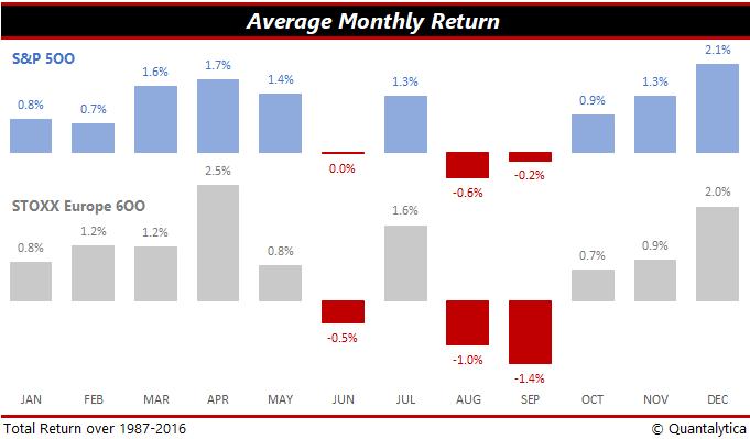 Zoals de zaken er nu voorstaan, is het weinig waarschijnlijk dat de aandelenmarkten in de loop van de maand september zwaar onderuit zullen gaan. Een dip van 10 à 15% is echter nooit uitgesloten. Analisten roepen al een poos dat de beurzen rijp zijn voor een correctie. Een dergelijke daling zou echter geen directe bedreiging vormen voor de opwaartse trend van de afgelopen jaren. Houd wel rekening met de mogelijkheid dat de S&P500 eind deze maand een procent of twee lager noteert dan eind augustus, en de Stoxx600 een procent of vier. De maand september is Europese aandelen doorgaans minder gunstig gezind dan Amerikaanse. Door de bank genomen is op Wall Street augustus een moeilijke maand.
