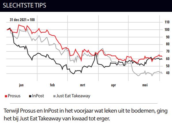 Maar het moet gezegd: ook wij hadden Just Eat Takeaway eind vorig jaar weer op kopen gezet en maakten dus dit jaar de gehele rit naar beneden mee. Na zo’n koersafstraffing een wel erg goedkoop geworden aandeel alsnog in advies verlagen is natuurlijk ook in velerlei opzichten een moeilijk verhaal. Onze specialist Jeff Thijssen rekende onlangs nog voor dat de som der delen ondertussen aanzienlijk meer waard is dan de huidige marktkapitalisatie en dat dit er vroeg of laat naar verwachting zal uitkomen. In ieder geval is aan de dalende trend de laatste weken nog geen einde gekomen.