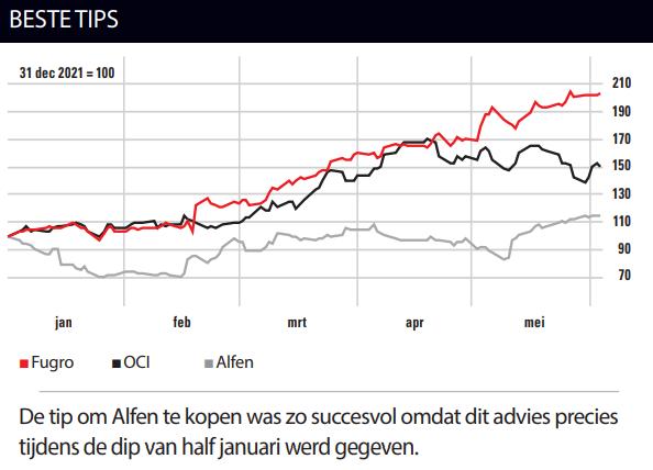 OCI en Fugro zijn dan ook typische aandelen die profiteren van de bijzondere marktomstandigheden dit jaar, hoewel de onderliggende trends ook al vorig jaar zichtbaar waren en de koersstijgingen tot en met 3 juni ook al in 2021 waren ingezet. Desalniettemin ‘profiteren’ beide middelgrote aandelen vrij direct van de oorlog in Oekraïne: Fugro van de sterk gestegen energieprijzen en OCI van de eveneens omhoog geschoten prijzen voor meststoffen. En gelukkig hebben wij u daar – anders dan bij Alfen – ook ten volle van laten meeprofiteren.