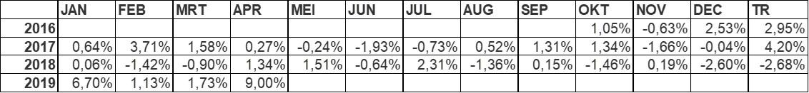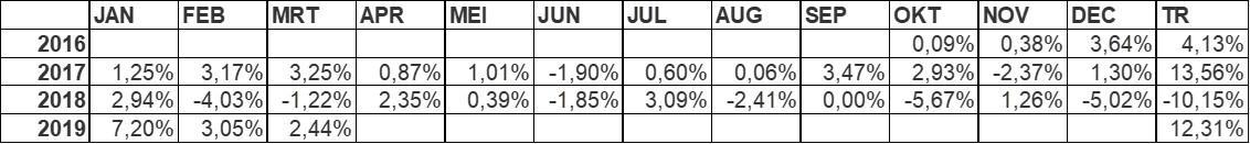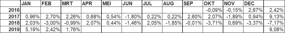 Maarten heeft op het moment slechts drie posities: aandelen in Europa, aandelen in de opkomende markten en goud. Laatstgenoemde is bezig met een terugkeer met 13,4% rendement sinds 27 september. Oorzaken zijn de onrust in de wereld omtrent de handelsoorlog tussen China en de Verenigde Staten, brexit, de begroting van Italië en de afkoelende wereldhandel. De centrale banken hebben door hun acties en uitlatingen er juist voor gezorgd dat aandelen uitstekend presteren. Het gevolg is dat de portefeuille van Maarten dit jaar met 9,1% is opgelopen.