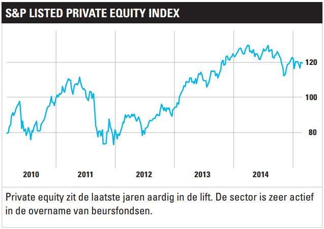Veel grote private-equityhuizen zijn genoteerd aan de beurs, waaronder 3i Group, KKR, Blackstone Group en Partners Group. Verder zijn er trackers beschikbaar, zoals de iShares Listed Private Equity, die de 61 bedrijven volgt in de S&P Listed Private Equity Index. Tot slot zijn er ook gespecialiseerde beleggingsfondsen, zoals het Aberdeen Private Equity Fund en Princess Private Equity Holding Limited. Beursgenoteerd private equity kan vaak tegen een forse korting ten opzichte van de intrinsieke waarde worden aangekocht.[/su_spoiler]