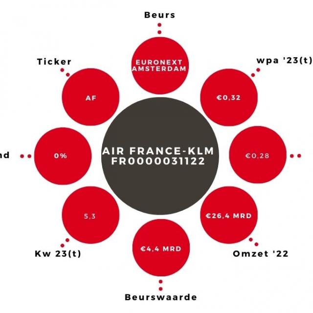 De verhouding nettoschuld/ebitda bedraagt per eind maart 1,5 tegen nog 1,8 eind 2022. Verdere schuldafbouw is het doel, zonder dat dit tot winstverwatering moet leiden. Zo zal Apollo Global Management mogelijk €500 mln aan quasi eigen vermogen inbrengen in een dochterbedrijf van Air France-KLM op het gebied van Engineering en onderhoud. Air France-KLM kampt nog wel altijd met een negatief eigen vermogen van €3,4 mrd, waarmee een nieuwe aandelenemissie niet van de baan is.