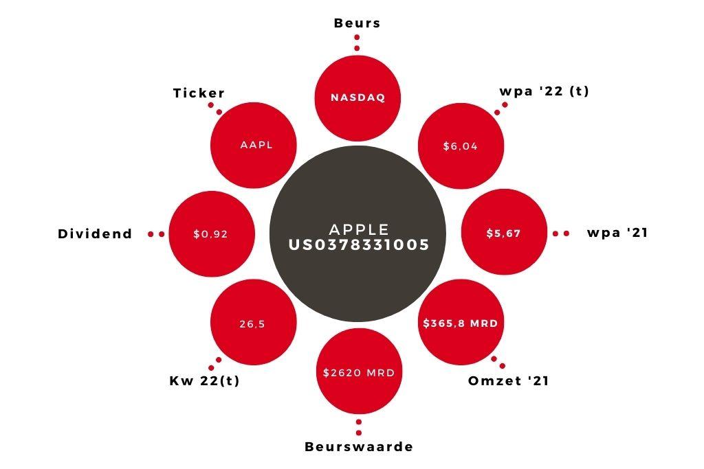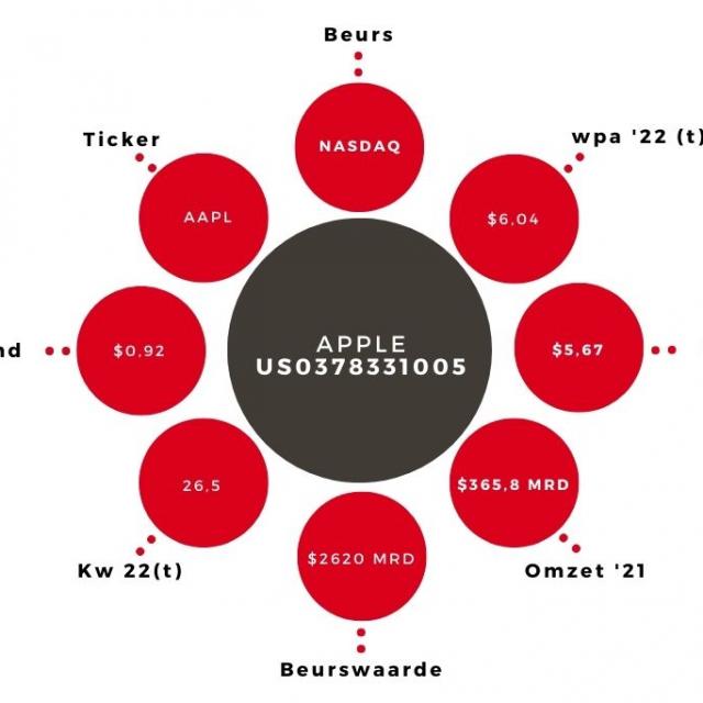 De winst is helaas wel afgenomen, doordat de kosten harder stegen dan de omzet. Dat komt gedeeltelijk door de dure dollar, maar hogere loonkosten lijken ook een rol te spelen. De kosten voor management en voor onderzoek en ontwikkeling zijn met meer dan 10% gestegen. Het valuta-effect zal in het nieuwe kwartaal groter zijn. De winst zal daardoor weer wat lager uitkomen, maar per saldo is het waarschijnlijk genoeg om mijn wpa-taxatie voor dit boekjaar te halen. Ik verhoog die taxatie zelfs een klein beetje, naar $6,04 (van $6,00). Voor volgend jaar verhoog ik mijn taxatie ook iets, naar $6,20 (van $6,15). Een aantal factoren die de omzet en winst nu hinderen zullen in het voor Apple heel belangrijke eerste kwartaal (oktober-december) waarschijnlijk nog steeds van invloed zijn. De problemen met de bevoorradingsketen zullen waarschijnlijk afnemen, dus een iets hogere winst in het volgende boekjaar zou mogelijk moeten zijn.