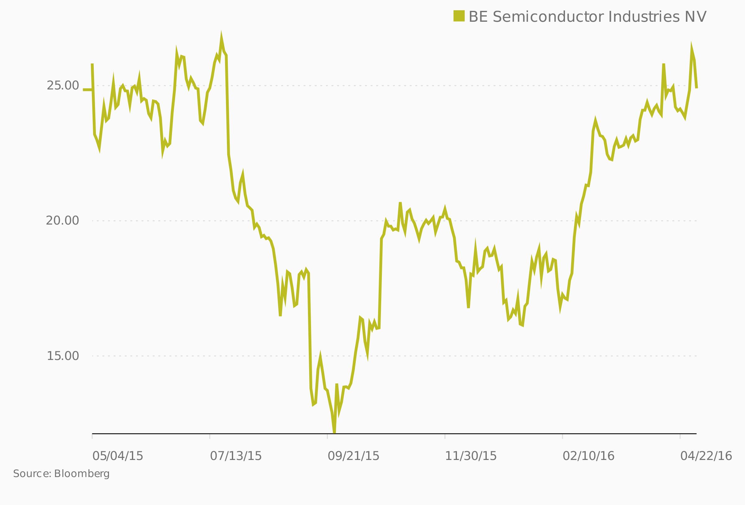 Het goede nieuws in het bericht was de verwachting voor het nu lopende tweede kwartaal. Besi gaat uit van een 20 tot 25% hogere omzet dan in het eerste kwartaal. Dat zou betekenen dat de omzet in de buurt komt van €100 mln. Deze positieve vooruitblik wordt gesteund door het orderboek; in het eerste kwartaal zijn er orders ontvangen voor in totaal €103,9 mln. Een kwartaal eerder kwam het ordertotaal niet verder dan €77,3 mln. Volgens Besi is er vanuit China en Taiwan veel vraag naar de hecht- en verpakkingsmachines die worden gebruikt voor de productie van chips voor smartphones.