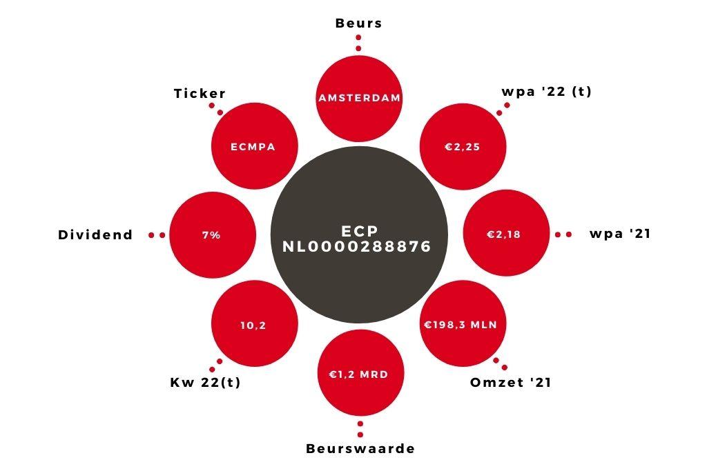 Voor 2022 raam ik een licht hogere winst per aandeel van €2,25, ondanks de desinvesteringen, en een cash dividend van €1,68. Met een disagio van 39% en een dividendrendement van bijna 7% blijft het aandeel ECP ondergewaardeerd. Het inflatiebestendige karakter van het aandeel kan weleens tot een snelle herwaardering leiden. Mijn advies blijft ‘kopen’.