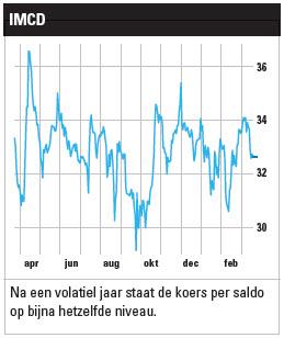 Ceo Piet van der Slikke toonde zich zeer content met de behaalde resultaten. Hij spreekt over een consistente sterke prestatie, ondanks moeilijke marktomstandigheden. De focus op voortgaande margeverbetering werpt vruchten af, zo stelt hij. Door een selectief overnamebeleid wordt de geografische dekking verder verbeterd en met de overname van MF Cachet is een solide platform met groeimogelijkheden in de attractieve Amerikaanse markt gecreëerd. Op jaarniveau draagt MF Cachet circa 20% bij aan de omzet van IMCD en vanwege het feit dat de Amerikanen marges maken van boven de 10% is de bijdrage aan het ebita circa 25%. Met deze overname in de achterzak is het dus niet zo moeilijk voor Van der Slikke om ook voor dit jaar ‘groei’ te verwachten. De forse koersstijging van IMCD heeft als nadeel dat de verwachtingen in de markt hoog gespannen zijn. IMCD overlegde keurige jaarcijfers, maar analisten reageerden gemengd en het aandeel verloor in een redelijk positieve beurs 2,4%. Mogelijk dat dit samenhangt met het ontbreken van een concrete winstprognose. Ook de magere autonome groei zal beleggers niet al te blij maken. Zeker de prestaties in Europa zijn wat dat betreft niet al te opbeurend. Het feit dat Van der Slikke zich voorlopig op de vlakte houdt, zal ook van doen hebben met de vele macro-economische en geopolitiek onzekerheden die de wereld kenschetst.