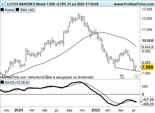 Het totale beeld is negatief en daarmee komt ons technische advies voor Lotus Bakeries uit op ‘verkopen’ met €6850 als koersdoel.