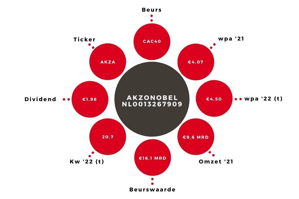Een groot deel van de grondstofkosten van AkzoNobel is gelinkt aan de olieprijs, die is opgelopen tot het hoogste niveau in zeven jaar. Voorlopig lijkt de krapte op deze markt aan te houden, terwijl het bedrijf last blijft houden van toeleveringsproblemen. Het vooruitzicht dat veel partijen hun winstverwachting voor 2022 gaan verlagen en de zeer bescheiden ruimte om investeerders een fraai groeipad voor te schotelen bij de beleggers-update, vormen aanleiding om het advies voor het aandeel AkzoNobel bij te stellen naar ‘verkopen’.Aandeel AkzoNobel kerngegevens