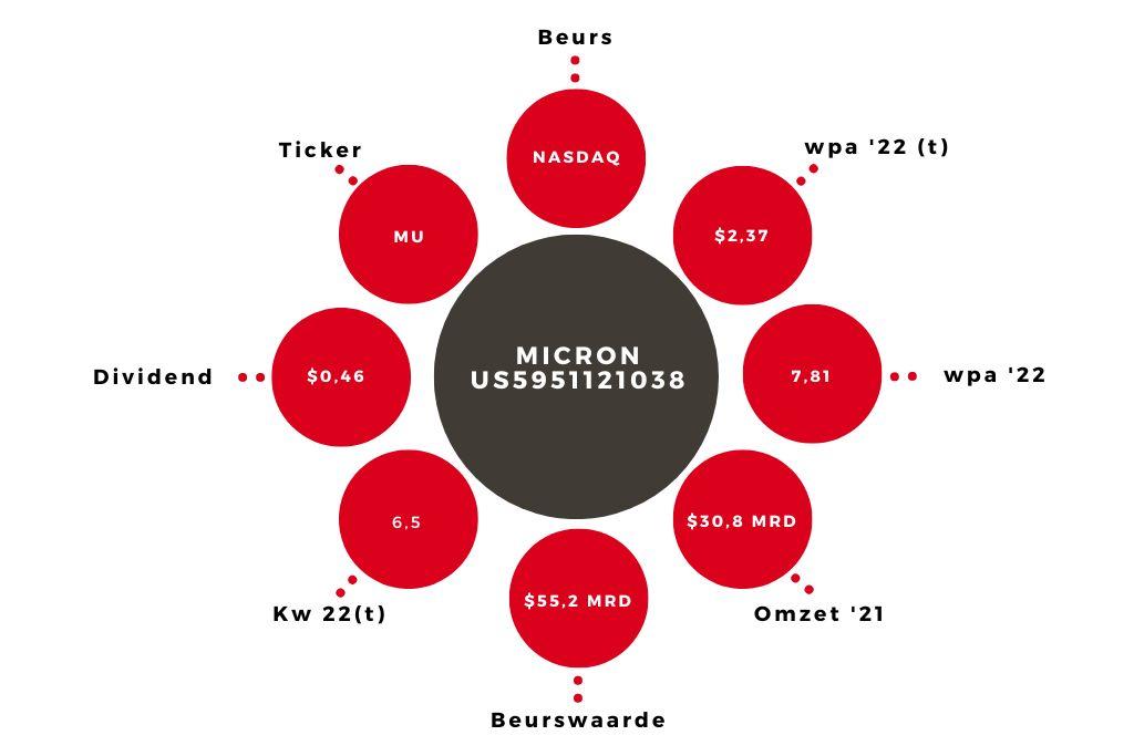 Het aandeel reageerde niet zo negatief op dit nieuws als je zou kunnen denken. Dat komt hopelijk doordat beleggers door de kwartalen en de cycli heen kijken. Micron heeft altijd cycli gekend, dat is een belangrijke verklaring voor de vaak lage k/w (bijvoorbeeld 6,5 op basis van afgelopen boekjaar). Maar het bedrijf is de afgelopen jaren veranderd, waardoor een k/w van minder dan 10 ten opzichte van de gemiddelde wpa naar mijn mening te negatief is.