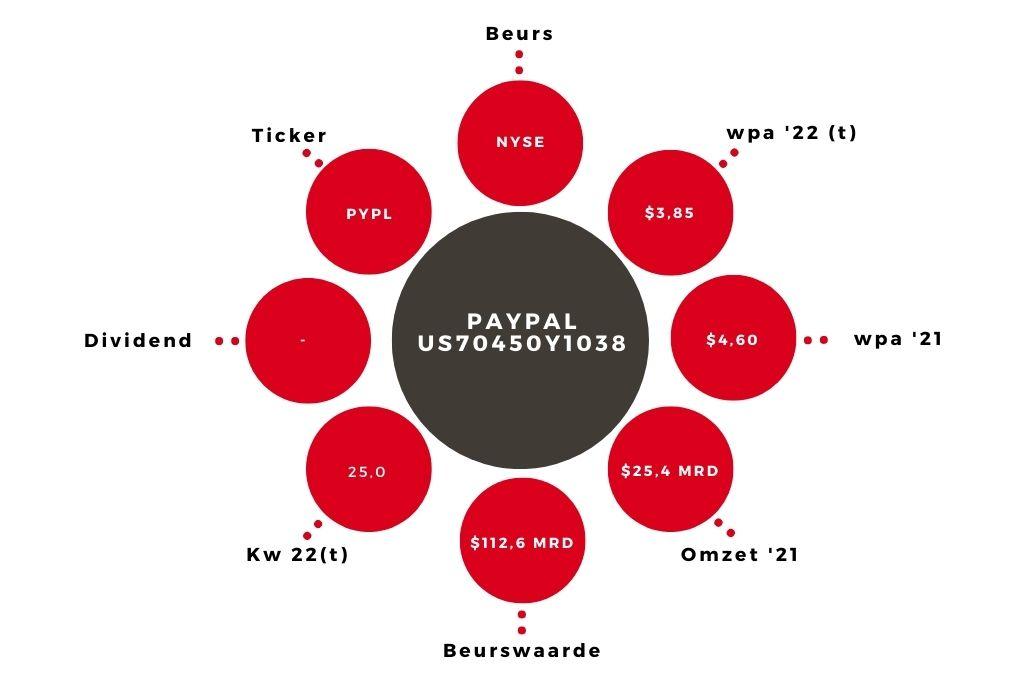 De koers van het aandeel Paypal leverde in en de afvlakkende groei was aanleiding om de strategie te herzien. Het loslaten van de doelstelling van 750 miljoen actieve gebruikers (2021: 426 miljoen) was pijnlijk. Op de beurs werd die pijn versterkt doordat de stijgende rente hard aankomt bij groeiaandelen en door het toenemende recessiegevaar.