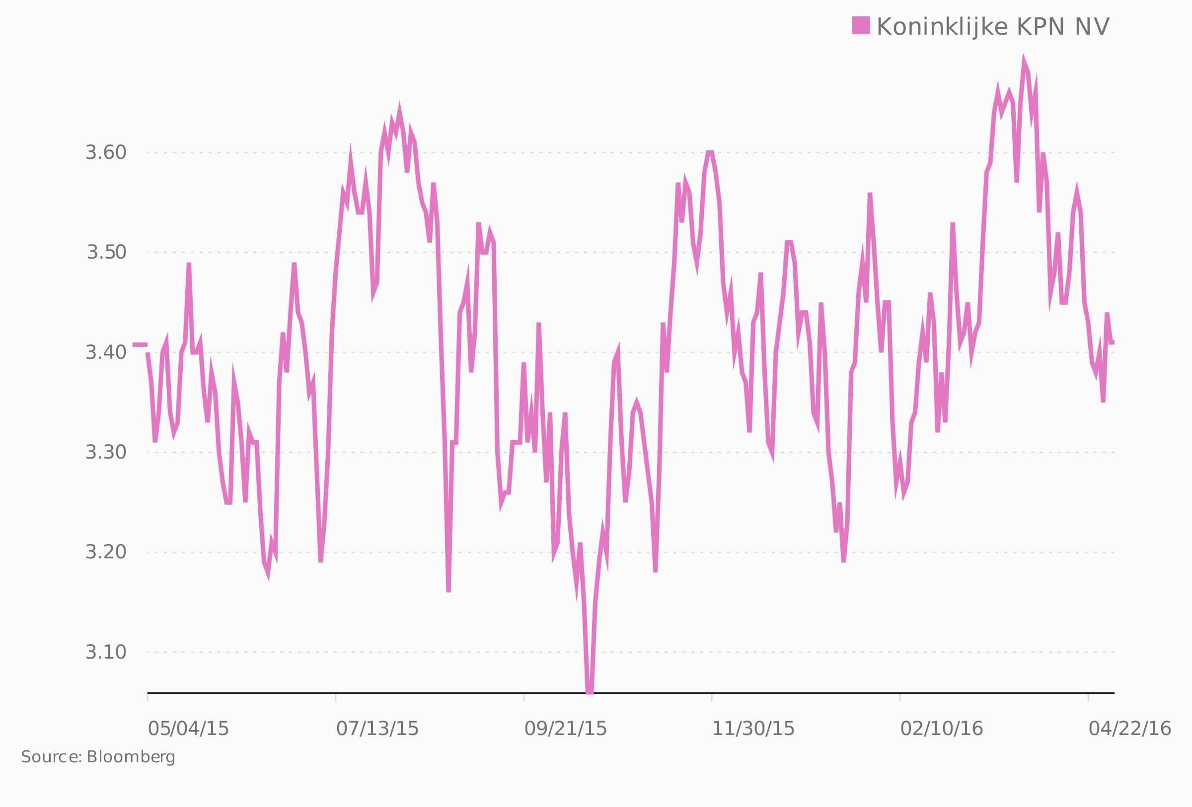Het afgelopen kwartaal toonde al een verbetering, met een ebitda-daling van 8% vergeleken met 20% in het vierde kwartaal. Positief is bovendien dat de consumententak goed blijft presteren. Er kwamen opnieuw behoorlijk wat klanten bij en die besteedden ook steeds meer, waardoor het ebitda van de divisie met 4,2% steeg. Voor 2016 houdt KPN vast aan de verwachting van een ebitda in lijn met 2015. Hier moeten wel aanzienlijke kostenbesparingen aan te pas komen. Voor de aandeelhouders komt er nog een mooie dividendstroom aan, bestaande uit een interim-dividend van €0,025 (te weten het dividend van Telefónica Deutschland, waarin KPN nog een 15,5%-belang houdt) en een eenmalige kapitaaluitkering van €0,28 per aandeel. Dit komt bovenop het reguliere dividend over 2016 van €0,10.