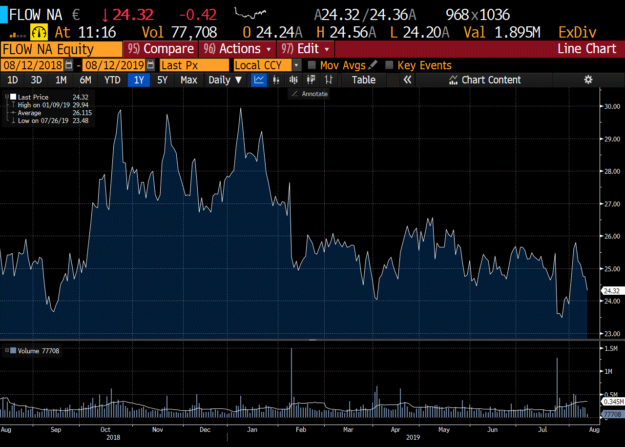Het bedrijfsmodel maakt Flow Traders tot een van de meest onvoorspelbare bedrijven op het Beursplein. De verwachte winst per aandeel 2019 van €1,50 kan afhankelijk van het beursklimaat zomaar 50% hoger of 20% lager uitpakken. Dat maakt het lastig om op basis van traditionele waarderingscriteria een advies op het aandeel te plakken. De k/w van bijna 17 op basis van het lopende jaar oogt wat duur. Maar aan de andere kant betalen beleggers minder dan 12 keer de gemiddelde winst per aandeel over de afgelopen drie jaar. De onderliggende groei wordt verhuld door sterk fluctuerende kwartaalresultaten. Hoewel er in de meeste portefeuilles ongetwijfeld ruimte is voor een anticyclisch aandeel zoals Flow Traders, stel ik de koopaanbeveling bij gebrek aan een duidelijke koersimpuls bij naar een houdadvies.