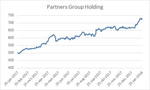 De drie oprichters van Partners Group hebben ieder 10% van de aandelen. Het verdienmodel bestaat uit een combinatie van beheer- en prestatievergoedingen. De stabiele managementfees zijn met 70-80% van het totaal goed voor het grootste deel van de omzet. Het gaat daarbij doorgaans om lange contracten van 10 tot 12 jaar. De performance fees zijn op lange termijn goed voor 20-30% van de omzet, en zijn vooral de laatste jaren veel belangrijker geworden in lijn met het groeiende beheerde vermogen en het gunstige klimaat voor beursgangen. Ook investeert Partners Group mee met zijn klanten door zelf een positie (vaak zo’n 1%) te nemen in de investeringsprogramma’s. Over 2017 rekenen analisten op een 15% hogere omzet van CHF1,1 mrd, en ook voor de komende jaren wordt dubbelcijferige groei voorzien.