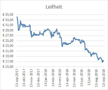 Op 14 augustus kwam Leifheit met halfjaarcijfers en werd de outlook (nogmaals) verlaagd. Voor 2018 wordt gerekend op een omzetgroei van 2,5%-3,5% tegen de eerdere voorspelling van 4-5%. Dat viel slecht bij analisten. Met name het verkoopadvies van Berenberg de dag erna (van ‘houden’ naar ‘verkopen’) zorgde voor een flinke koersdaling. Dat kwam ook omdat het koersdoel zeer fors werd teruggebracht: van €26 naar €16,50.