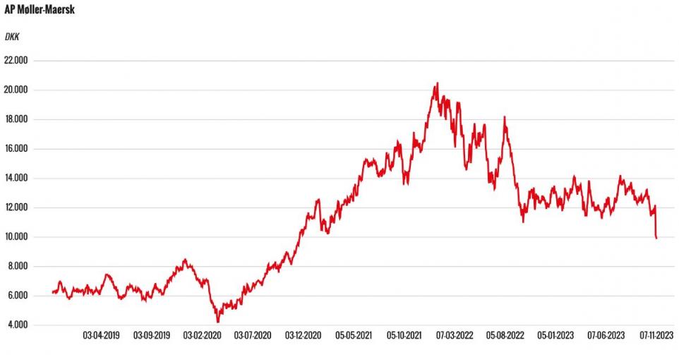 Sinds begin 2022 is de situatie voor AP Møller-Maersk steeds verder verslechterd, zoals weer bleek uit de kwartaalcijfers vorige week. De rederij ziet zich gedwongen wereldwijd minstens 10.000 banen te schrappen om kosten te besparen en de winstgevendheid te beschermen. De stap volgt op de gedaalde vrachtprijzen, de toegenomen concurrentie in de sector en de zwakkere vraag naar containervervoer. De koers is sinds begin vorig jaar gehalveerd naar de laagste stand sinds 2020, midden in coronatijd dus.