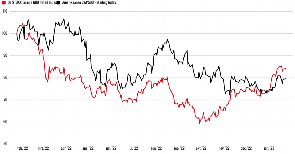 De graadmeters van zowel de Europese als Amerikaanse retailbedrijven blijven echter redelijk in lijn met de algemene indices. De STOXX Europe 600 Retail Index won zelfs 42% sinds de dip van 29 september, met het aandeel B&M European Value Retail als een van de uitblinkers.