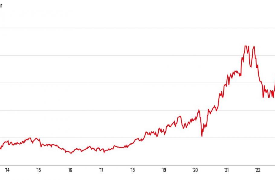Een draai naar online (rechtstreeks aan de consument verkopen) met een glansrol voor de populaire Hoka-hardloopschoenen brachten Deckers tot de all-time high van vandaag. De omzet over boekjaar 2022 (tot maart) steeg met 23,7% naar $3,15 mrd en ook de komende jaren verwachten analisten dubbelcijferige groeicijfers en bovengemiddelde winstmarges.