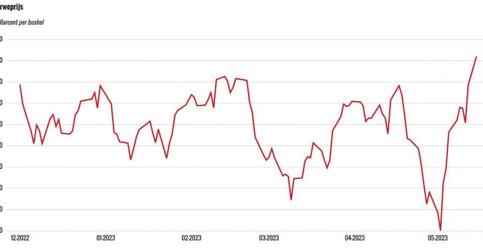 De tarweprijs is gestegen tot de hoogste stand van 2023, terwijl twee weken geleden nog de laagste prijs van 2023 op het bord stond.