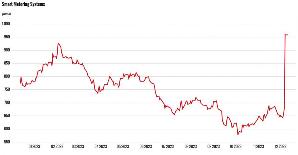 Het Britse aandeel Smart Metering Systems (SMS) schoot omhoog na een overnamebod.