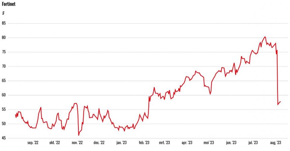 Het aandeel Fortinet kreeg een flinke koersdreun te verwerken. De koersreactie deze tip illustreert dat beleggers de lat qua cijfers hoog leggen.