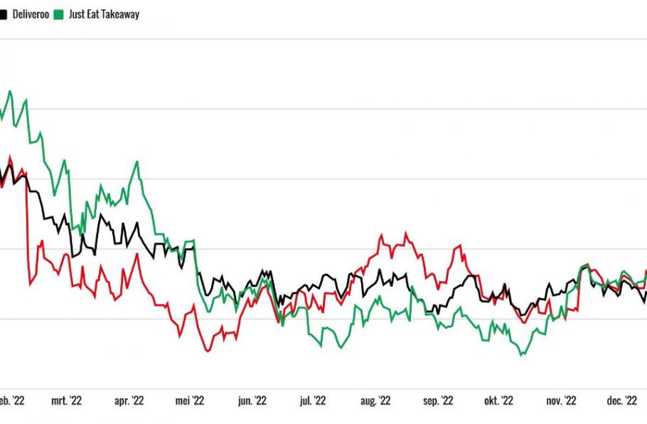 Wat is er aan de hand? Los van bedrijfsspecifieke factoren zijn er twee hoofdoorzaken van het extreme koersverloop van de maaltijdbezorgers. Op de eerste plaats het einde van de lockdowns in Europa vanaf begin vorig jaar. Op de golven van die beperkende maatregelen waren Just Eat Takeaway en het Duitse Deliveroo Hero in 2020 en 2021 naar grote hoogten gestegen.