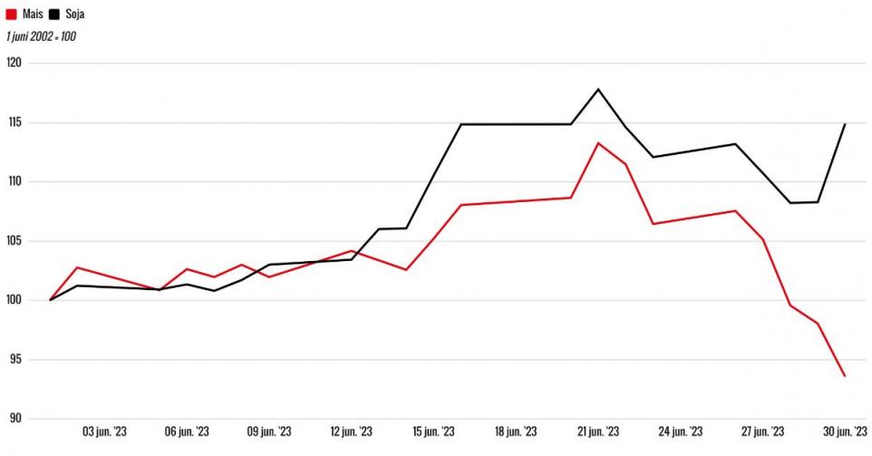 In de eerste drie weken van juni werd de Verenigde Staten geteisterd door een periode van extreme droogte, wat een negatieve impact had op de productie van maïs en sojabonen. Als gevolg hiervan zijn de prijzen van beide gewassen aanzienlijk gestegen.