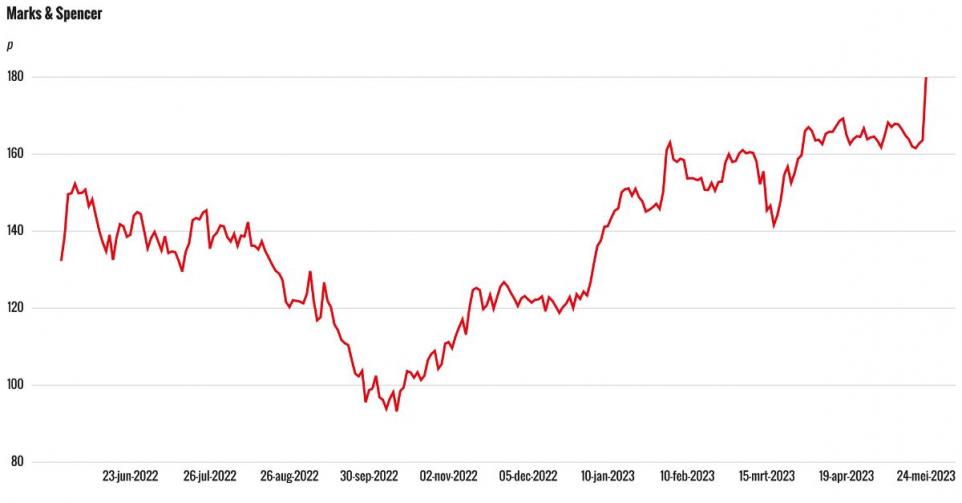 De stijging kwam door meevallende cijfers en de aankondiging dat het dividend weer hersteld zal worden. Marks & Spencer, dat eind 2016 bekendmaakte de Nederlandse vestigingen te sluiten, is de laatste jaren bezig aan een transformatie. De schuldpositie is afgebouwd en er werd geïnvesteerd in nieuwe vestigingen en online verkopen met meer nadruk op voeding en kwalitatief hoogwaardige kleding.