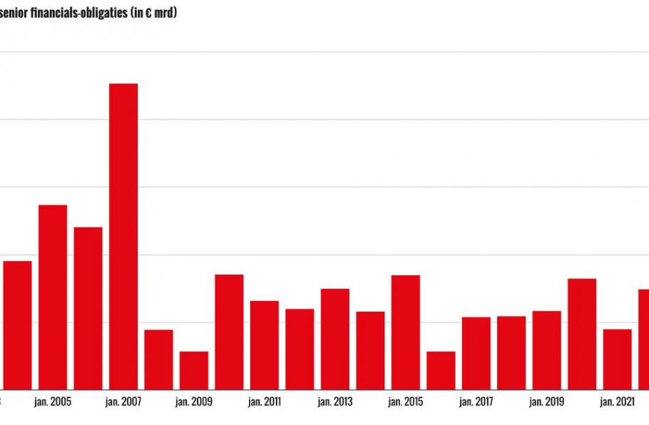 Financials betalen dus wel een flink hogere coupon op nieuwe leningen ten opzichte van een jaar geleden. In januari 2022 accepteerden beleggers nog een coupon van slechts 0,875% voor een achtjarige lening van BNP Paribas. Vorige plaatste de Franse bank een zesjarige lening met een aanzienlijk hogere coupon van 4,375%.