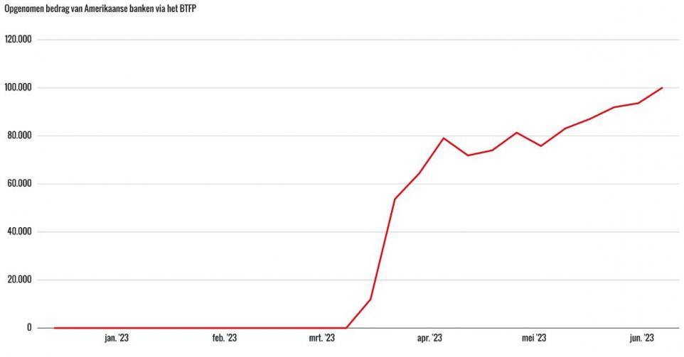 De afgelopen week is het bedrag dat Amerikaanse banken hebben opgenomen via het Bank Term Funding Program (BTFP) van de Fed gestegen tot $100 mrd.