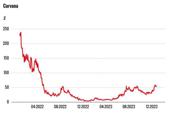 Menno van Hoven Menno van Hoven Carvana | Van schlemiel naar grote winnaar in 2023 Hoe bizar beurskoersen kunnen bewegen bewijst het Amerikaanse Carvana, een Amerikaans e-commerceplatform dat gespecialiseerd is in de online aan- en verkoop van gebruikte auto’s.