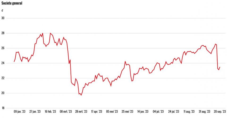 Het vooruitzicht van een lager groeitempo en een minder hoog dividend kwam SG afgelopen maandag op een koersdaling te staan van 9%. Hoewel het voorzichtige, defensieve beleid het neerwaarts risico in slechte tijden beperkt, is er een reëel gevaar dat de bank terrein verliest op meer groeigeoriënteerde branchegenoten. Ondanks de lage waardering met een verwachte k/w van 7,0 voor SG, gaat de voorkeur bij internationale banken dan ook uit naar JPMorgan Chase en HSBC.