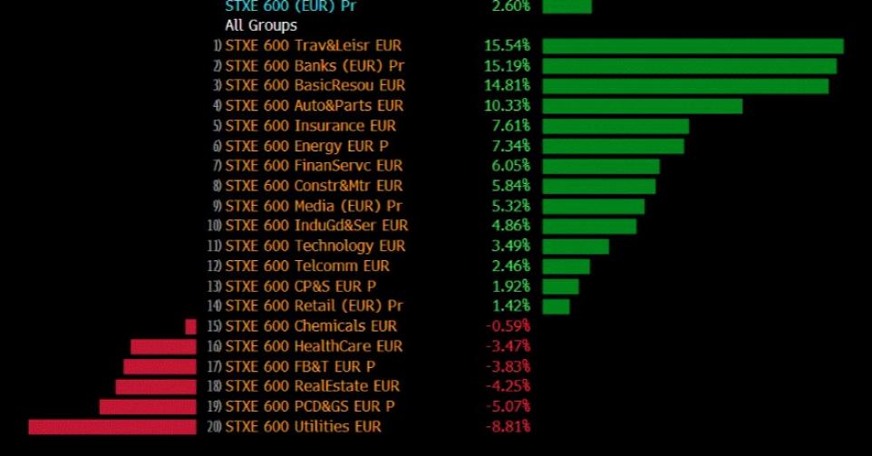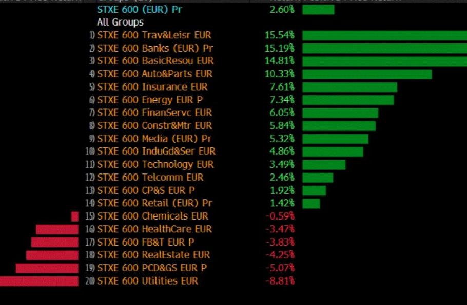 Echter, zoals we ook bij andere financiële indices hebben kunnen zien, was najaar 2022 ook voor Europese aandelen het keerpunt. Vanaf dat moment verminderde de angst voor verdere geldontwaarding, terwijl ook het vooruitzicht van de heropening van de Chinese markten na de pandemie aandelen vleugels gaf. Tussen het dieptepunt op 29 september 2022 en vorige week vrijdag steeg de Stoxx600 bijna 30%.