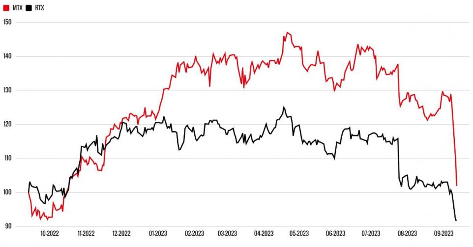De Amerikaanse vliegtuigbouwer RTX verloor deze week in één klap een kleine 8%. Toeleverancier MTU ging in het kielzog nog harder onderuit.