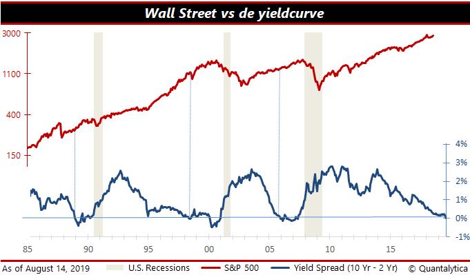 Die schrik wordt gevoed door de dreigende inversie van de Amerikaanse rentecurve. Een omgekeerde rentetermijnstructuur is een van de beste voorspellers van een toekomstige recessie. Ook is de ontwikkeling van de Amerikaanse economie vaak leidend voor de mondiale economie.