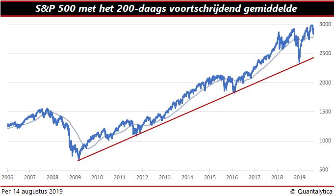 Het is punt is wel dat de aandelenmarkten nu al meer dan tien jaar stijgen. Dus we zitten eerder tegen een top aan, dan een bodem. Als je in oktober 2007 op de (vorige) piek had gekocht, dan mag je jezelf nog altijd 135% rijker rekenen. Dat is iets (7 procentpunt) meer dan met dividendaandelen. Maar met laagvolatiele aandelen uit de S&P500 realiseerde je een opbrengst van 204%!