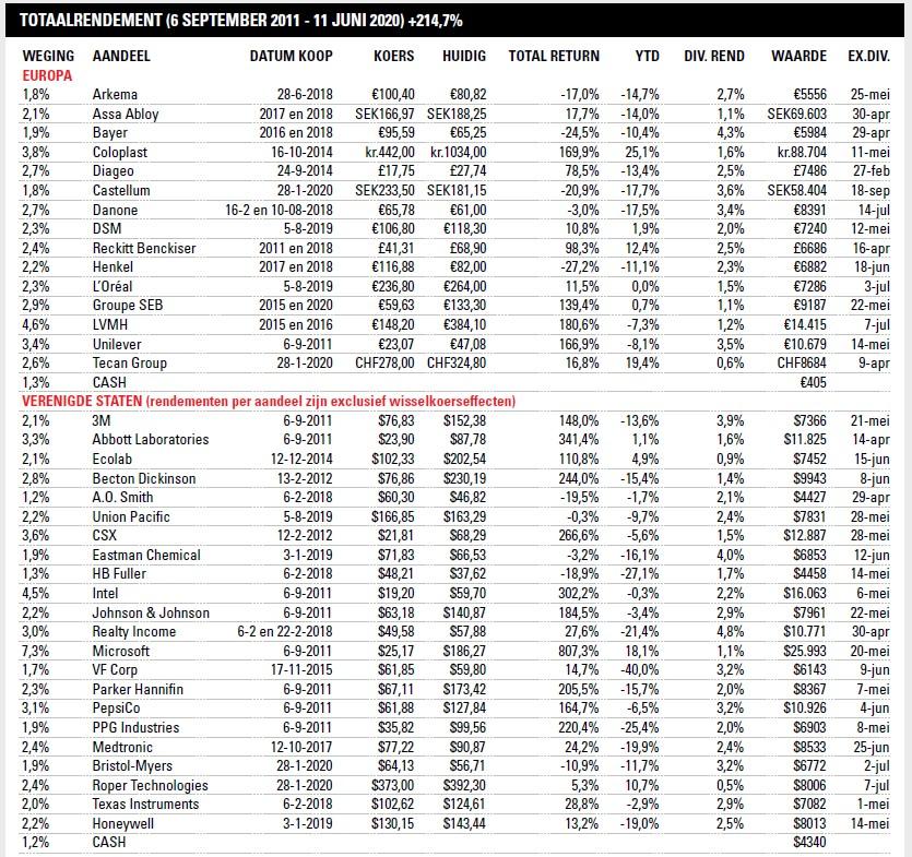 Per saldo valt de schade dus behoorlijk mee en voor de komende jaren heb ik een rotsvast vertrouwen in de huidige samenstelling. Bedrijven als SEB, LVMH en Arkema zullen de komende jaren zonder twijfel de dividendschade snel weer inlopen en forse verhogingen in 2021 zijn waarschijnlijk.