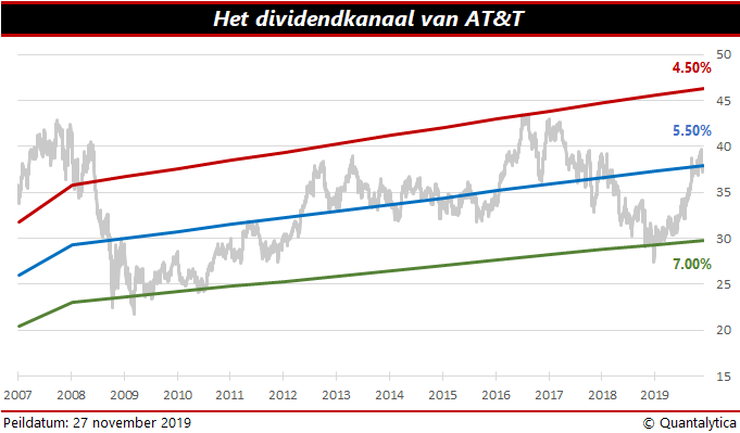 Het vijfde en laatste aandeel uit de ‘The Big Five’ is AT&T. De aanbieder van telecommunicatiediensten is ook actief in Nederland. De Amerikaanse tegenhanger van KPN schroefde het jaarlijkse dividend al 35 keer achtereen op. Het aandeel is daarmee een echte Dividend Aristocrat.