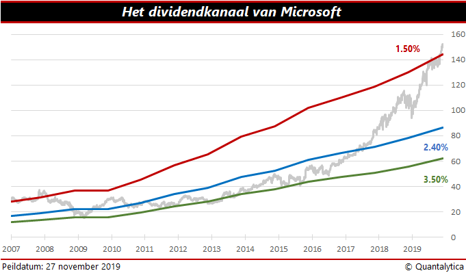 Een bedrijf dat aardig is op weg om uit te groeien tot Dividend Aristocrat is Microsoft. Het technologiebedrijf verhoogde het jaarlijks dividend reeds 18 keer op rij. Als het bedrijf in Europa gevestigd was, kon het nu al aanspraak maken op de adellijke eretitel. Voor Europese aandelen is de minimumeis ten aanzien van het trackrecord vastgesteld op 10 jaar, voor Amerikaanse bedrijven op 25 jaar.