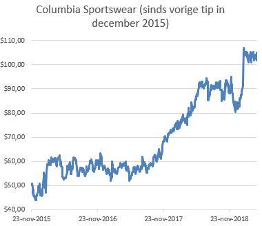 De Amerikaanse producent van buitenkleding en -schoenen Columbia Sportswear (+23% in 2019) bereikte begin februari een hoogste koers ooit op bijna $110. Toch zit er op termijn nog meer in het vat voor deze sterke groeier. Columbia tipte ik in het Dividend E-magazine van december 2015 ook al eens, destijds als smallcap op een koers van $50,61.