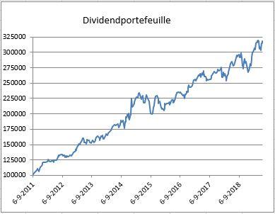 Aan dividend werd sinds september 2011 nu in totaal €45.557 geïncasseerd op een totale portefeuillewaarde van €316.391. Ruim 80% van de performance is dus afkomstig van koerswinst.