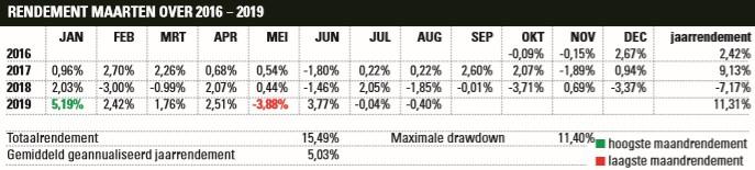 Maarten verloor in augustus 40 basispunten. Het rendement over 2019 zakte daarmee naar 11,3% en sinds het begin staat er +15,5%. Gemiddeld genomen is dit 5,0% per jaar, iets minder dan de 6% waar Maarten op mikt. Maarten heeft vier verschillende posities: aandelen in de opkomende markten, aandelen uit Europa, goud en kasgeld. Aandelen uit de Verenigde Staten heeft hij niet, omdat het verschil in waardering tussen Amerikaanse en Europese aandelen is opgelopen tot de hoogste stand in de afgelopen 70 jaar.