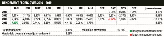De beleggingsportefeuille van Floris is een mooi voorbeeld van hoe het werkt om met risico’s een zo hoog mogelijk rendement te behalen. Zijn portefeuille heeft de afgelopen twee jaar geen rendement gemaakt, maar door de uitschieters in het begin staat nu toch een totaalrendement van 19,4% op de borden. Floris behaalt meestal veel meer of veel minder dan zijn gemiddelde jaarrendement van 6,3%. De kunst is om te blijven zitten en de honderden bedrijven waar hij blootstelling aan heeft via meerdere ETF’s voor hem te laten werken.