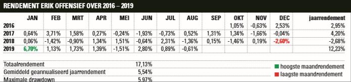Erik Defensief heeft als enige een positieve maand achter de rug. Zijn beleggingsportefeuille steeg met 1,4% naar een nieuwe hoogste stand ooit. De iShares $ Corp Bond UCITS ETF (ticker: LQDA & ISIN: IE0032895942) zag zijn jaarrendement toenemen van 12,1 naar 17,1%. De sterk dalende rente op Amerikaanse staatsobligaties hebben de Amerikaanse bedrijfsobligaties mee naar beneden getrokken. Bovendien is in augustus de Amerikaanse dollar aangetrokken is de euro gedaald. Dit zorgt voor een positief valutaverschil.