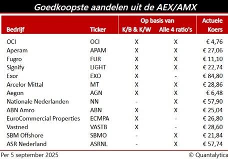 De AEX steeg in 2025 al met 10% en het jaar is nog niet voorbij. September is vaak een slechte beursmaand, wat kansen biedt om aandelen goedkoop op te pikken. Welke Nederlandse aandelen zijn nu goedkoop?