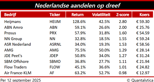Tot dusver harkten de aandelen met de hoogste Z-score uit de AEX dan wel de AMX in 2025 al 16,2% aan rendement binnen, tegenover een opbrengst van 5.8% voor de AEX. Benieuwd of overtuigd? Bijgaand tien Nederlandse (momentum)aandelen die nu op dreef zijn.