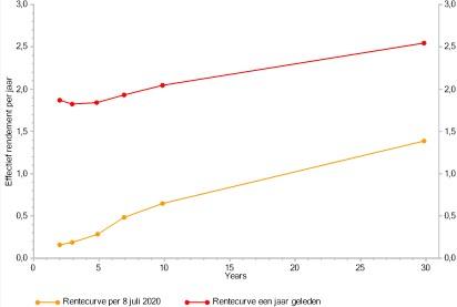 Fed-baas Powell gaf in juni een duidelijke boodschap: de Fed is zeer bereidwillig om de obligatierentes laag te houden. De korte obligatierentes vooral door middel van de officiële rentetarieven, die voorlopig nagenoeg 0% blijven. En de lange obligatierentes vooral door het opkopen van deze leningen en mogelijk zelfs explicietere controle van rentes. De Amerikaanse obligatierentes zullen daardoor waarschijnlijk niet al te veel stijgen, ondanks de grote hoeveelheid extra geld die de overheid moet lenen. En de rentecurve blijft daardoor vlakker dan zonder ingrijpen van de Fed het geval zou zijn geweest. Bij een gelijkblijvende of licht oplopende rente zijn de rendementsverwachtingen voor een mandje Amerikaanse staatsobligaties beperkt. Een herhaling van het sterke eerstekwartaalresultaat (+7,7% in dollars) verwachten we dan ook niet. Een voortzetting van het resultaat over het tweede kwartaal (+0,2% in dollars) ligt de komende tijd een stuk meer voor de hand.