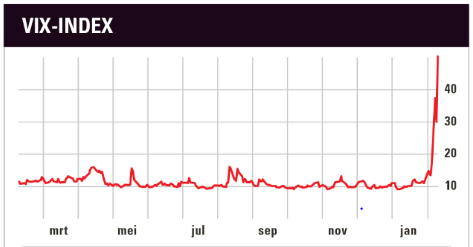 De VIX stond ten tijde van het Amerikaanse banenrapport op 13, maandagavond bij het slot was dit al 37. Dinsdag, bij de opening van de Amerikaanse beurs, stond de VIX op 50. Dit is een extreem hoge stand. We zagen hem één dag in 2015 bij de Chinese devaluatie en meerdere dagen tijdens de wereldwijde financiële crisis van 2008.