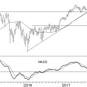 Nu het hoogtepunt van dit jaar rond 538 is bereikt, gaat de AEX de uitdaging aan om door te stoten. Wij verwachten dat het laatste kwartaal van 2017 positief zal eindigen en een doorbraak zal worden gerealiseerd. Het regelmatig genoemde koersdoel op 560 kan voor het einde van het jaar worden bereikt. Hoopgevend is dat de MACD-indicator weer een positieve kruising laat zien. Dat geeft aan dat het momentum in opwaartse richting draait, waardoor de kansen op een doorbraak toenemen.