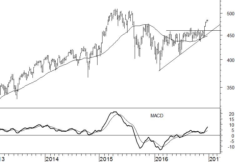De AEX heeft de verwachtingen volledig waargemaakt. Beter laat dan nooit. Lange tijd hebben wij ingezet op een beweging naar 475, terwijl de index bleef schommelen rond 450. Uiteindelijk bleken de positieve ingrediënten van het technische beeld sterk genoeg. Zo kende het 40-weeks gemiddelde een opwaarts verloop met de AEX daarboven. Ook het feit dat andere Europese beurzen waren uitgebroken, was een positief voorteken. Net als het seizoenspatroon dat tot en met april 2017 op groen staat.