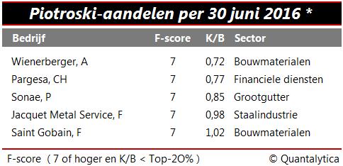 Als u aandelen screent op boekwaarde, wilt u natuurlijk weten welke aandelen echt koopwaardig zijn. De Amerikaan Joe Piotroski ontwikkelde hiertoe medio jaren negentig de F-score, een kwalitatieve parameter waarmee u zonder specialistische kennis met gegevens uit één enkel jaarverslag bij ondergewaardeerde aandelen het kaf van het koren kunt scheiden.